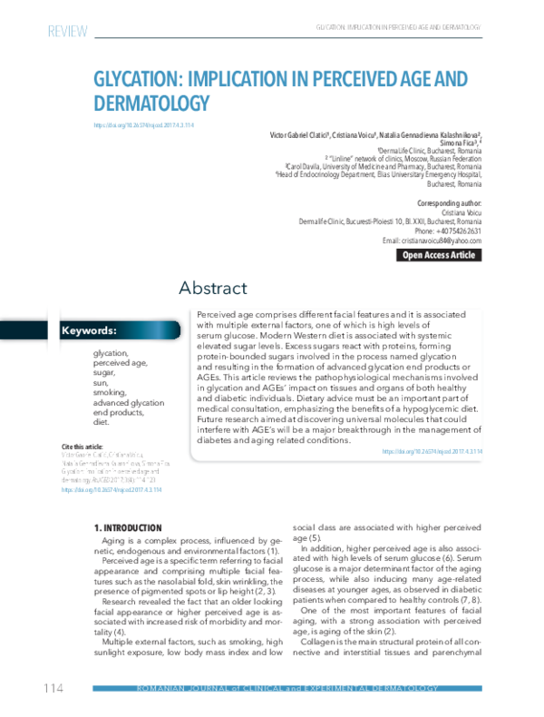 (PDF) GLYCATION IMPLICATION IN PERCEIVED AGE AND DERMATOLOGY Romanian Journal of Clinical and