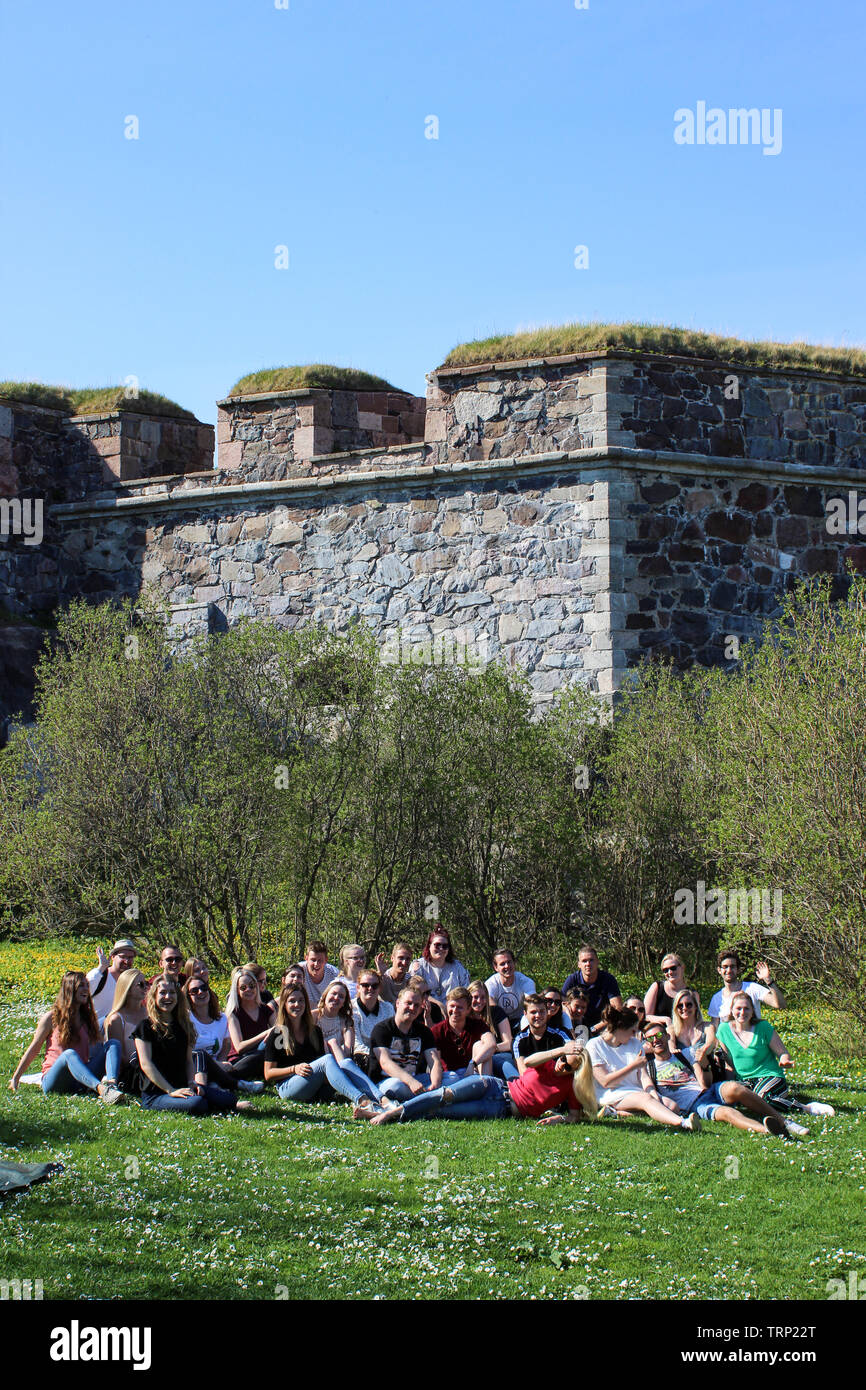 HaagaHelia university of applied sciences students on a field trip in Fortress of Suomenlinna