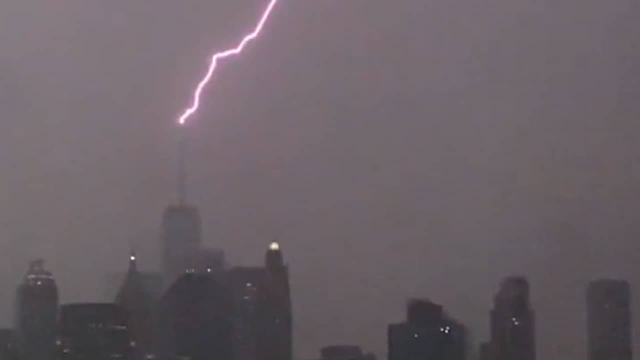 Mooie beelden Bliksem raakt hoogste gebouw van New York