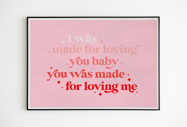 I was made for lovin' you baby You were made for lovin' me And I can't get enough of you baby Can you get enough of meTonight I want to see it in your eyes Feel the magic There's something that drives me wild And tonight we're gonna make it all come true Cause girl, you were made for me And girl I was made for you I was made for lovin' you baby.