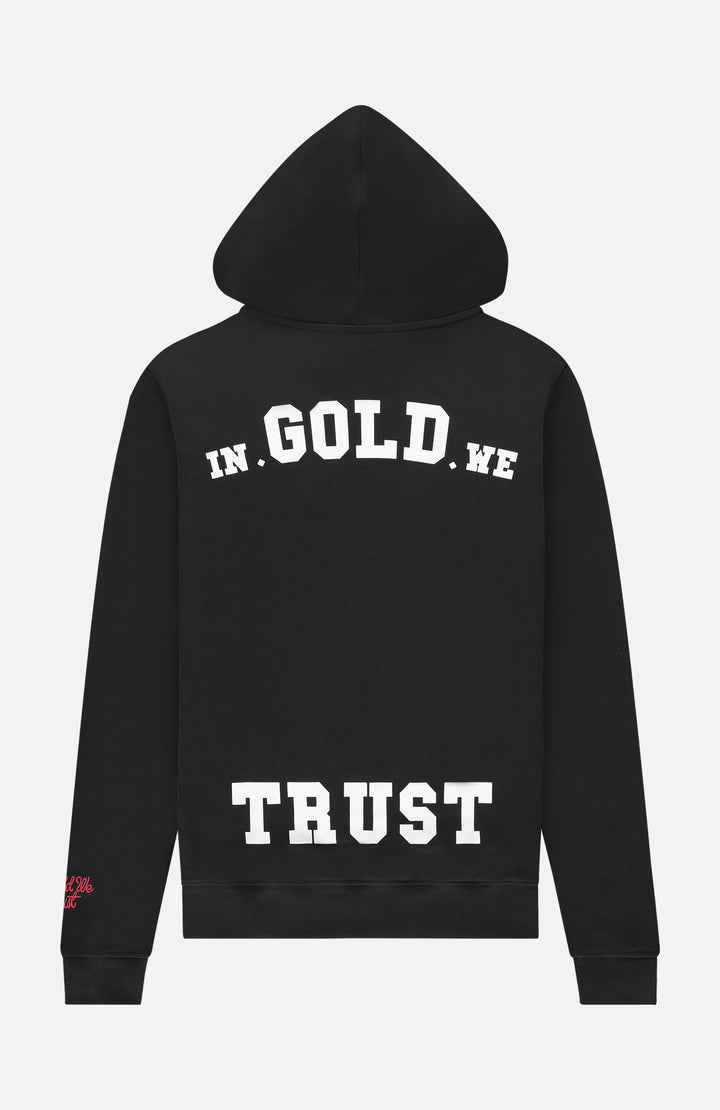 In Gold We Trust Hoodie met front en backprint van biologisch katoen • Zwart • de Bijenkorf