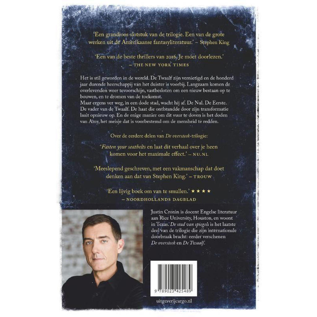 De stad van spiegels. Bestel nu. Auteur: Justin Cronin; Verschenen: 1 januari 2017; Uitgave: ISBN 9789023425489 Uitgever Cargo 800 pagina's ; Uitgever: Cargo;. Met dit afsluitende deel kunnen we concluderen dat Justin Cronin een zeer originele trilogie heeft geschreven. In ruim 2500 woorden beschrijft hij een wereld waarover je gaat nadenken.