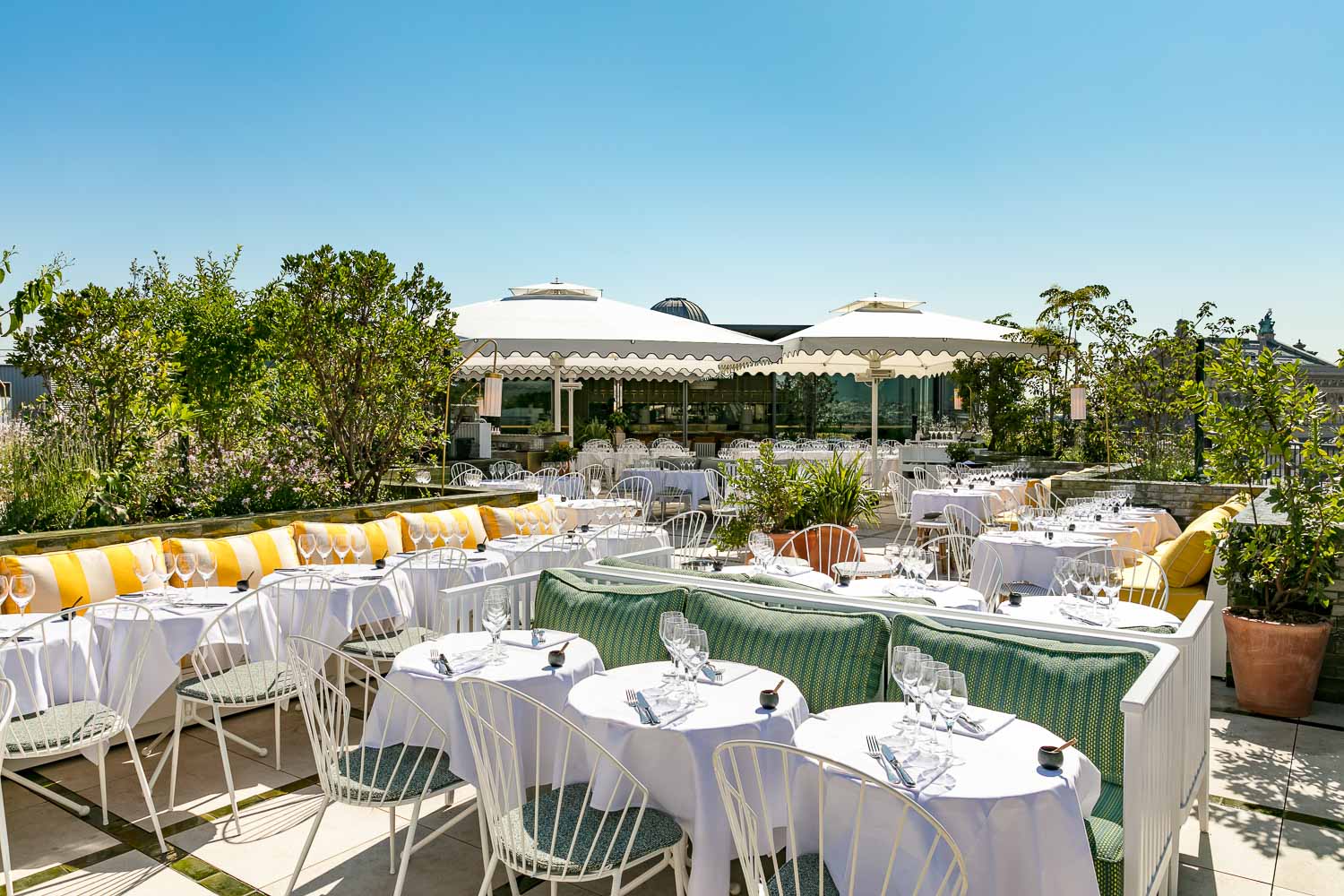 27-29 Bd des Capucines, 75002 Paris, France. Paris' ornate Opéra Garnier looms in the background at Sequoia Rooftop Bar, located on the top floor of the Kimpton St Honoré Paris. It has 360.
