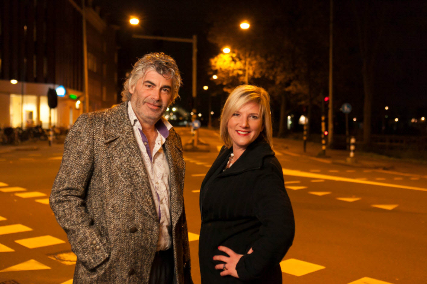 René Moerland en Marianne van den Anker op het podium van Logeion