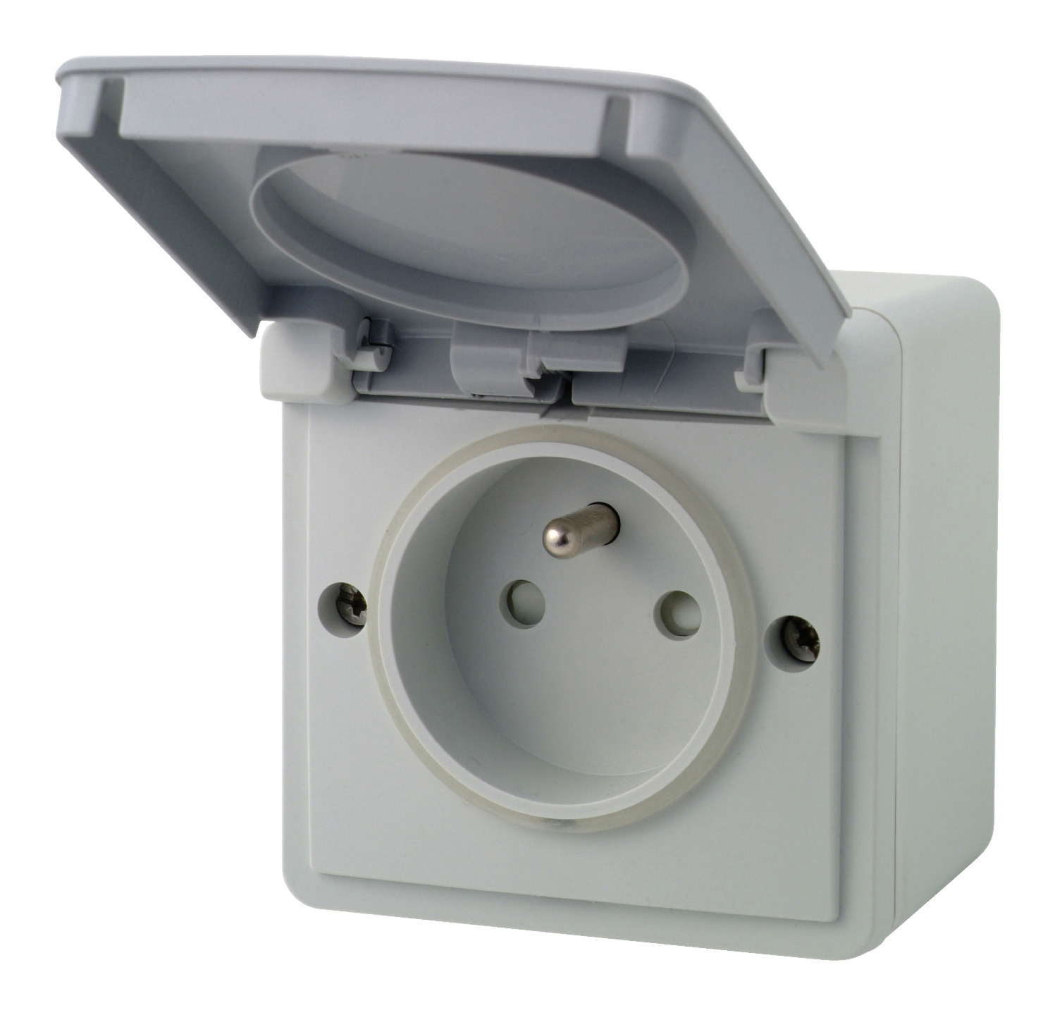 Niko Hydro opbouwstopcontact 2polig met aarding spuitwaterdicht grijs Stopcontacten
