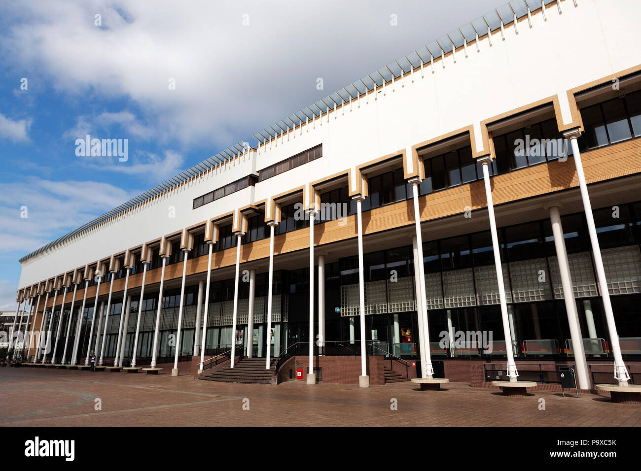 The facade of the theatre (Theater aan de Schie) in Schiedam, the Netherlands. Pillars surround