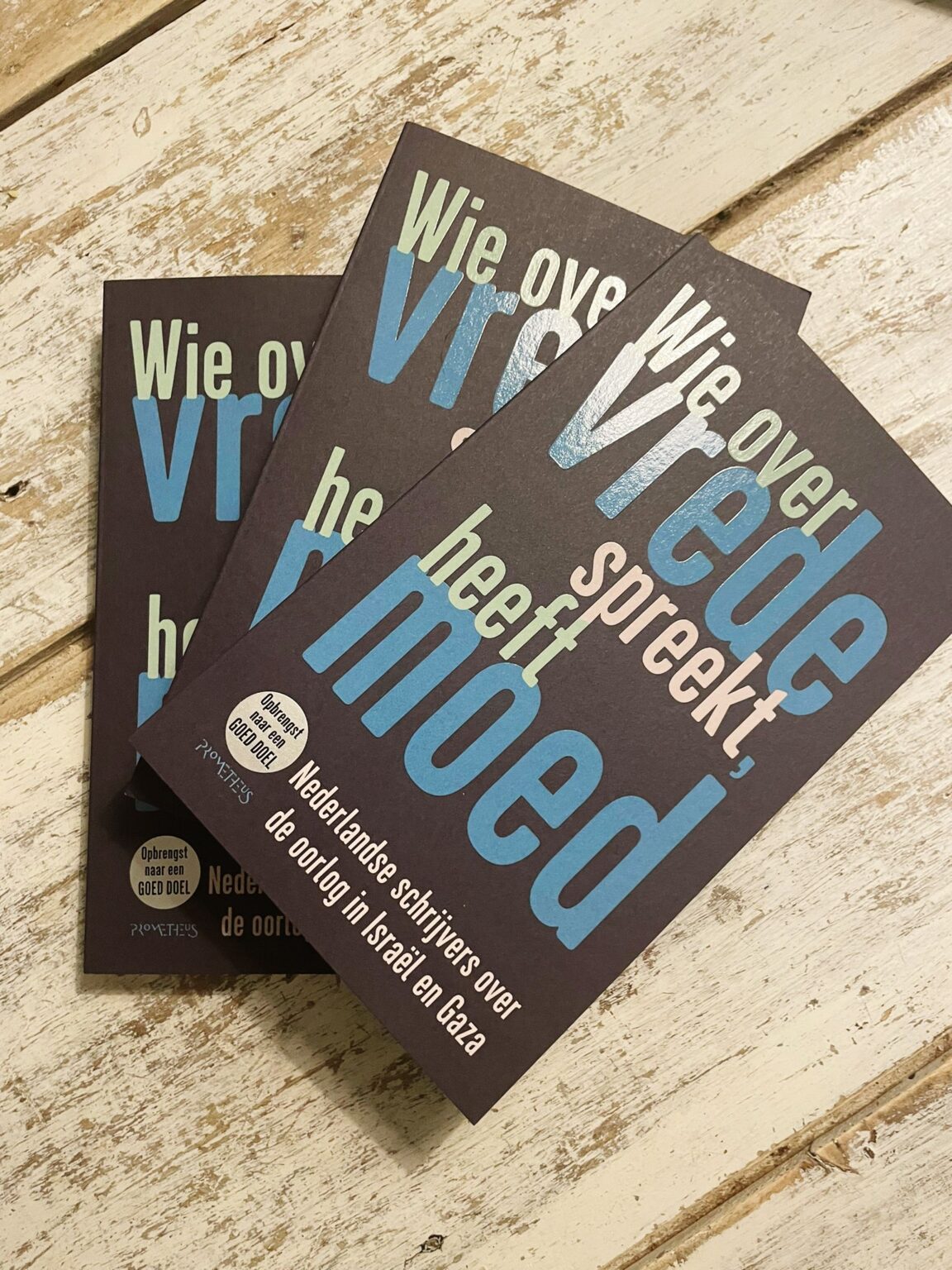 Leonard Ornstein (red.): Wie over vrede spreekt heeft moed - Nederlandse schrijvers over de oorlog in Israël en Gaza. Prometheus; 141 pagina's; € 9,99. (De opbrengst van dit boek komt ten goede aan een vredesproject.)